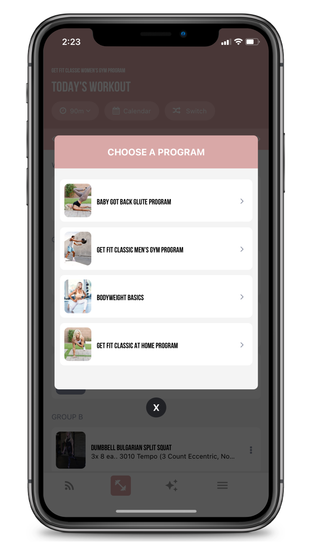 We do not recommend bouncing between programs. You should normally stick to a program for at least three months to get a full taste of the workouts. But we get it... maybe your gym closed or opened up, or you just want to try something else. We've made it super easy to switch between programs: