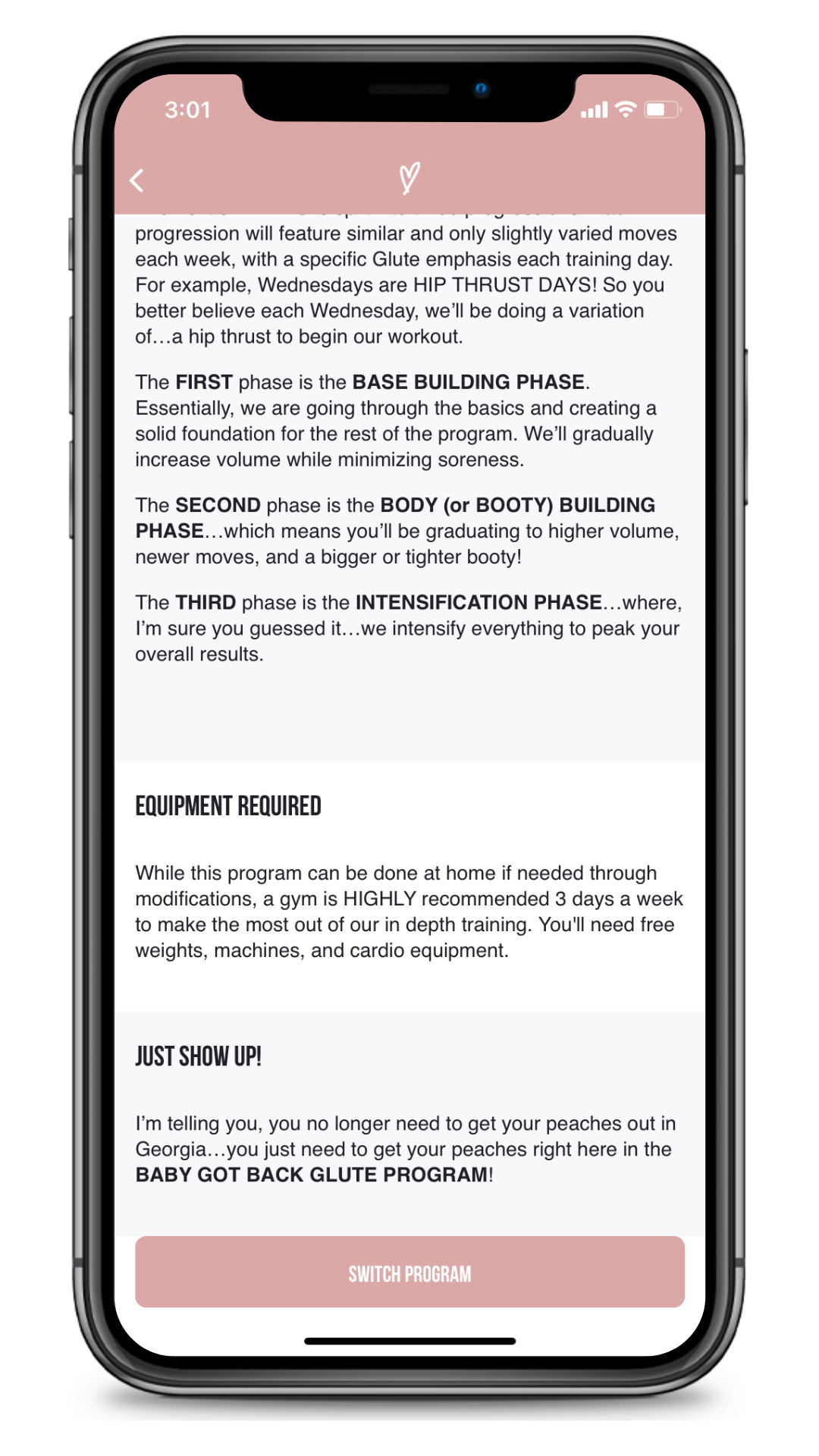 That's it! Now you can start your new program. If you need help, please email support@showupfit.app and our support staff will gladly help you out.