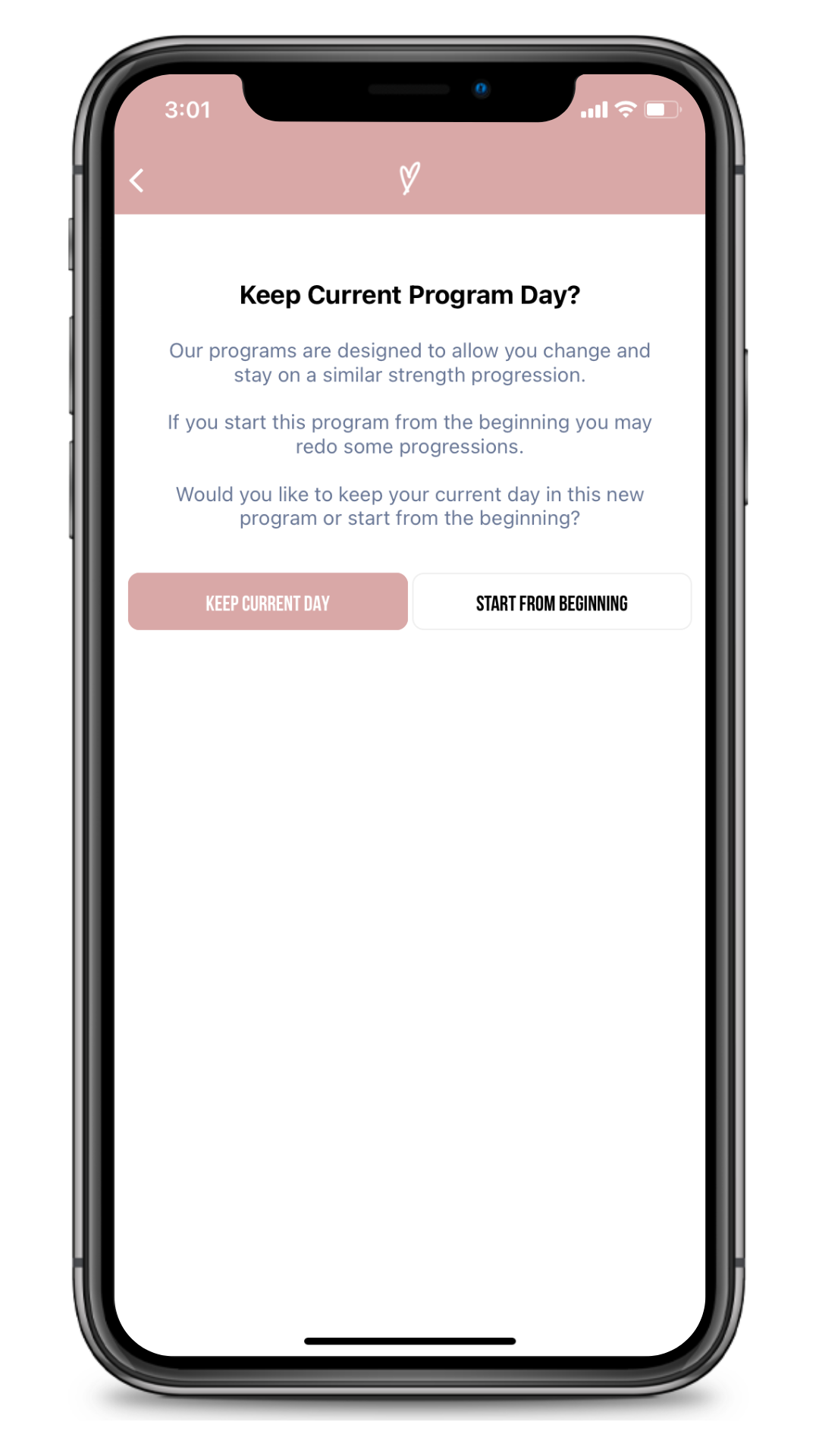 4. Choose to start from your current day, or to start from the beginning of the new program.